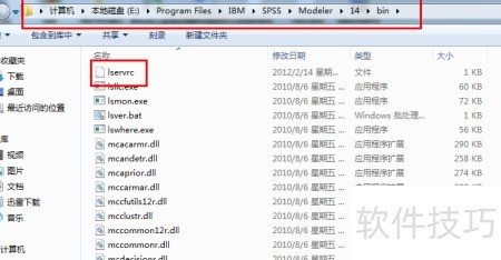 12、 将lservrc授权文件复制到软件安装目录下的bin文件夹中,例如本文示例路径为E:Program FilesIBMSPSSModeler14in,若安装于C盘,则对应路径为C:Program FilesIBMSPSSModeler14in。随后,将该文件粘贴至目标bin目录,并替换原有同名文件,完成替换后即视为注册成功。此操作可激活软件功能,确保程序正常使用。请在操作前确认路径正确,避免误覆盖其他文件。