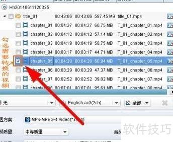 2、 软件自动扫描光盘中的音视频,勾选所需转换的视频即可。