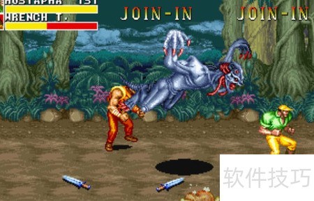 恐龙快打是由日本CAPCOM公司推出的一款经典街机动作游戏,其创作灵感源自1993年美国CBS播出的漫画Xenozoic Tales。游戏以广受欢迎的恐龙为主题,巧妙结合冒险与科幻元素,吸引了大量玩家。故事背景设定在遥远的26世纪,地球历经巨变,人类与恐龙共同生存,构建出一个充满危机与未知的世界。本作在玩法设计上颇具创新,大幅强化了道具系统的实用性。所有枪械均设有弹药机制,一旦耗尽便只能作为一次性投掷物使用,增加了战斗策略性。玩家甚至有机会夺取Boss的专属武器进行反击。以往仅用于破坏获取补给的木桶等容器类道具,如今也可被拾起并投掷攻击敌人,大大提升了互动性与战斗多样性。此外,游戏延续了CAPCOM一贯的多段攻击设定,操作手感流畅,打击感强烈,为玩家带来紧张刺激的闯关体验。