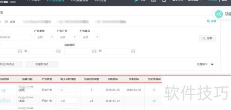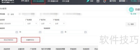 1、 广告管理页面所示,提供两种添加活动方式:选择已有活动或创建新活动。