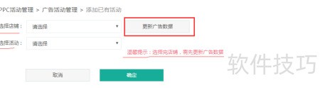 3、 选择指定店铺,点击更新广告数据按钮,同步亚马逊后台信息至系统,随后选定活动并确认提交。添加成功后,该活动将出现在列表中,具体效果所示。
