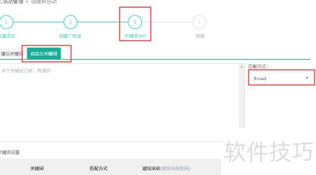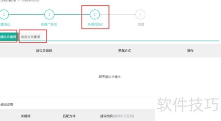 6、 点击下一步进入关键词出价页面,建议参考图示关键词设置。