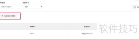 9、 在列表中点击数据,可查看关键词及其匹配方式,通过点击添加否定关键词功能,可将其他关键词设为否定。