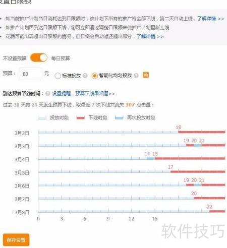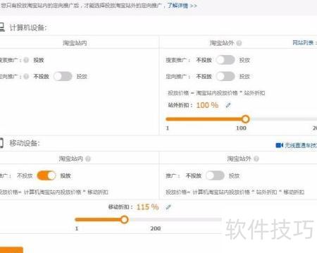 1、 新上线的淘宝商品进行直通车推广时,通常设定每日预算约100元,采用智能投放模式,并仅保留站内手机端投放,其余平台均关闭。