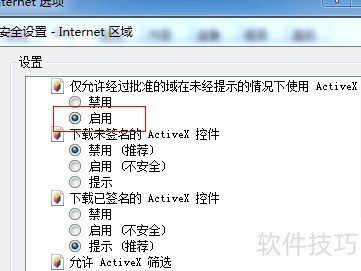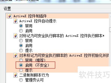 4、 启用对未标记为安全的ActiveX控件的初始化和脚本执行。