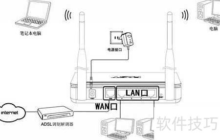 1、 请先按照图示连接路由器并接通电源。尽管是无线路由器,首次配置建议使用网线将电脑与路由器相连;若为笔记本电脑,也可直接通过无线网络连接路由器完成设置。