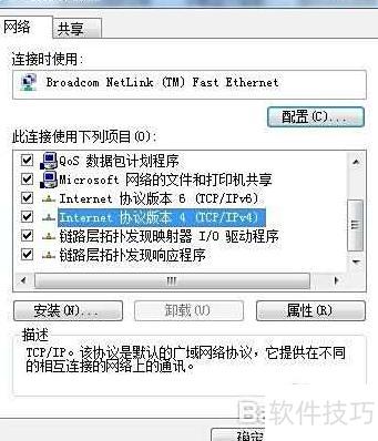 3、 选择TCP/IP4后点击属性,确认设置为自动获取IP地址。