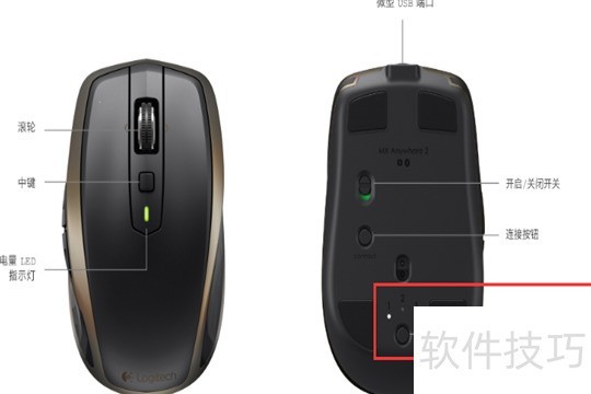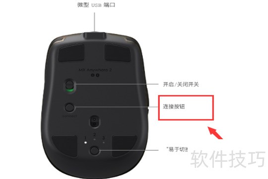 8、 按下罗技MX Anywhere 2鼠标上的易切换键,选择所需通道即可完成配对。