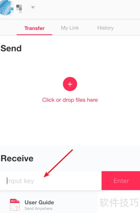 5、 打开电脑端Send Anywhere,输入之前获取的六位数字,然后点击旁边按钮即可完成操作。