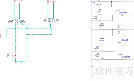 Automation Studio在气液电系统仿真方面功能强大。本文简要展示如何利用该软件通过电路实现按钮控制两个液压缸的单独或同步伸缩动作,全程采用纯电气逻辑设计完成操作演示。相关内容将为后续使用PLC实现相同控制功能的讲解打下基础,帮助理解不同控制方式的实现路径与应用特点。