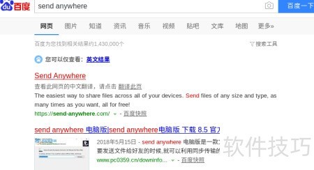 1、 在百度搜索栏输入Send Anywhere进行查找。