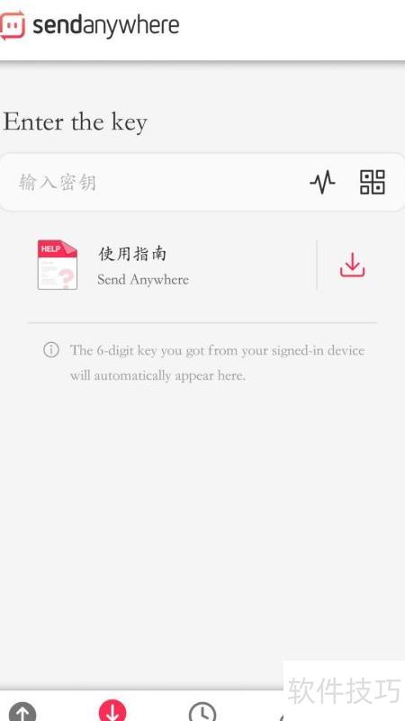 5、 输入接收码即可下载文件,或直接将文件拖至加号区域上传发送。