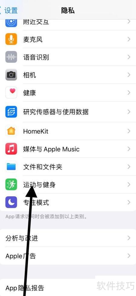 进入iPhone设置,选择隐私,点击运动与健身,开启健身跟踪功能即可。