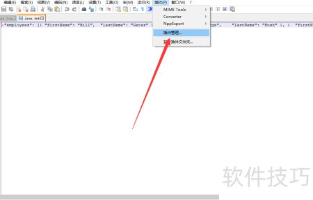 6、 在Notepad++菜单栏选择插件,再点击插件管理即可。