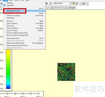 1、 Global Mapper 默认背景色为黄色。
