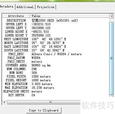 6、 查看数据的地理坐标、投影方式和精度等原始信息。
