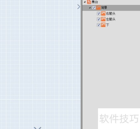 1、 在对象树中选择舞台,通过工具栏的图片功能上传背景图及三个方向的箭头。