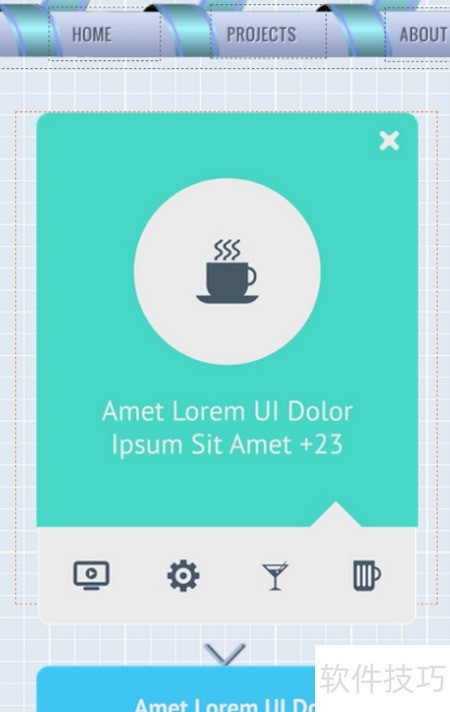 8、 选中透明按钮,通过工具栏事件功能添加点击事件,实现跳转至目标页面。