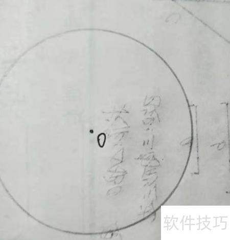 2、 以任意点O为圆心,选定半径长度,在纸上画出一个完整的圆。