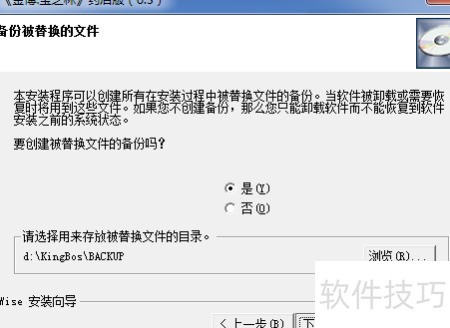 4、 更改安装路径后点击下一步,根据需求选择是否创建备份,建议勾选是并指定备份文件存放位置,随后继续点击下一步完成操作。