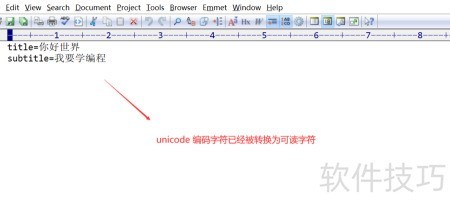 6、 打开转换后的文件,原本的Unicode编码字符现已变为可识别的文本内容。