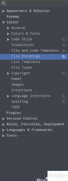 5、 在设置窗口左侧依次点击编辑器-文件编码,操作所示。
