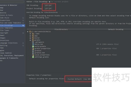 6、 在界面右侧可配置IDE及项目编码,右下角还能设置属性文件的默认编码,具体所示。