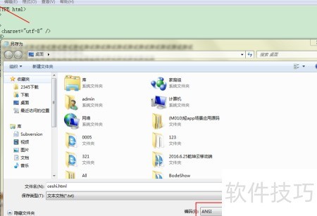 3、 用记事本打开文件,另存为时修改底部编码格式即可。