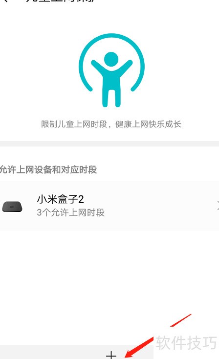 4、 在儿童上网保护页面底部,选择添加设备选项。