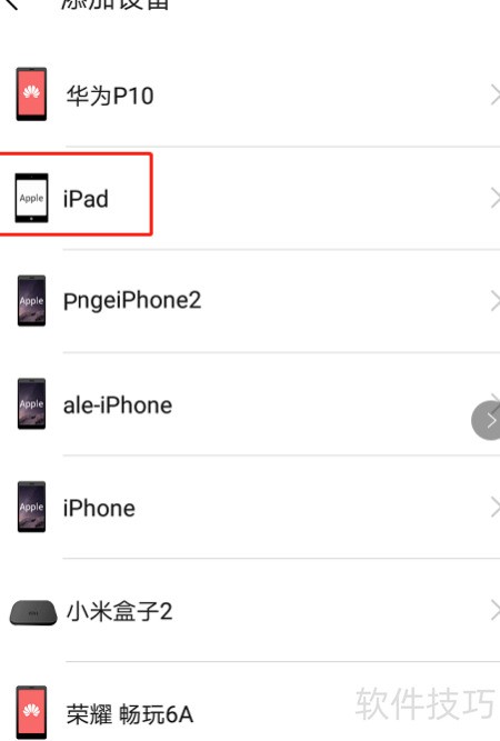 5、 系统将显示所有连接设备,从中选择iPad即可。