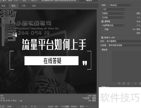 6、 将文件导出为GIF格式,选择导出为Web所用格式中的GIF选项。