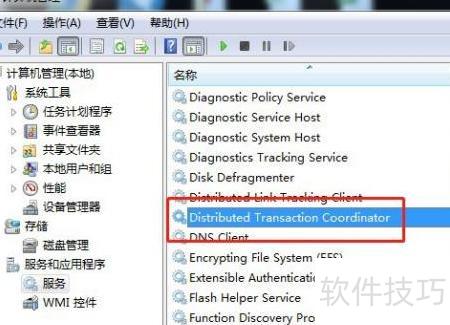 5、 在服务列表中定位到Distributed Transaction Coordinator,然后双击该项以打开其属性设置界面进行操作。