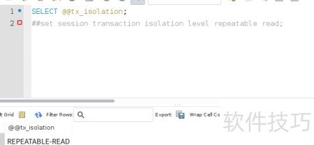 1、 查看当前事务隔离级别:执行命令 SELECT @@tx_isolation。