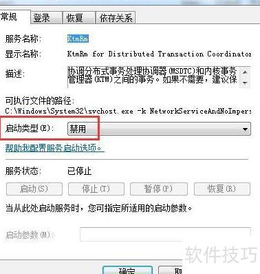 在Win7系统中,可通过运行services.msc找到Distributed Transaction Coordinator服务,右键属性将其启动类型设为禁用,并停止该服务即可。
