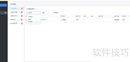 4、 今天要联系客户时,点击客户名称,在跟进信息栏填写内容并发布,状态即显示为已联系。可利用列表上方筛选功能进行查找。