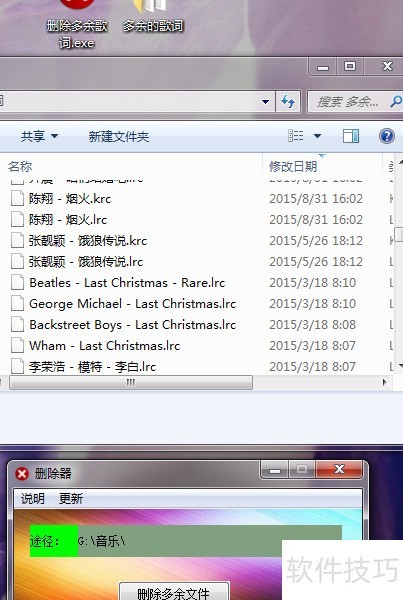 3、 删除器运行后,目录中将生成多余的歌词文件夹,所有冗余歌词均存放其中,可自行处理。
