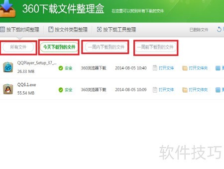 2、 按下载时间分类,包括全部文件、今日下载、近一周内下载及一周前下载的文件。此方式便于区分新旧文件,帮助找回并清理已遗忘的旧文件,提升文件管理效率。
