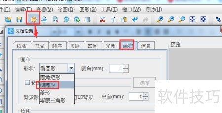 1、 在标签软件中创建新标签,进入文档设置的画布界面,将形状设为椭圆,右侧预览窗口即可实时显示当前标签的椭圆形外观。