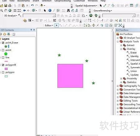 5、 擦除后将创建新图层,从图中可见,polygonB区域内已无任何点存在。