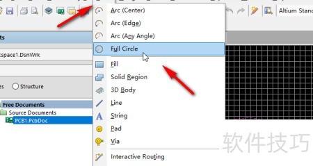 1、 在PCB编辑器中选择放置全圆命令,操作所示。