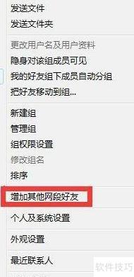 2、 在飞秋主界面,右键点击好友列表上方区域,弹出选项菜单后,选择增加其他网段好友即可。