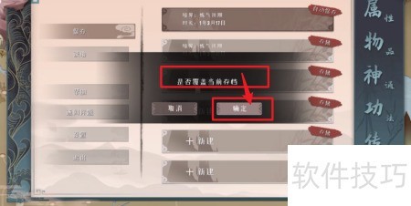 4、 弹出提示框后,确认覆盖当前存档即可完成操作。