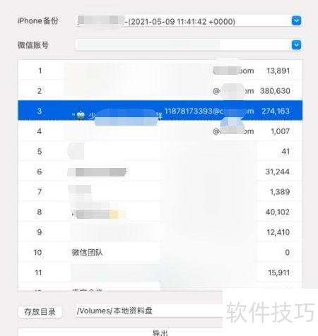 2、 选择需导出的聊天记录,点击后设定保存位置即可。