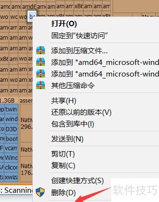 4、 所示,分析完成后每个小方框代表一个文件夹,双击可进入查看子文件夹,右键点击则可查看路径或执行删除等操作。
