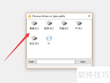 3、 运行SpaceSniffer,双击选择C盘进行扫描分析。