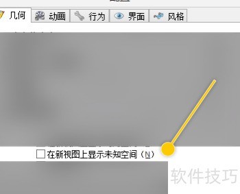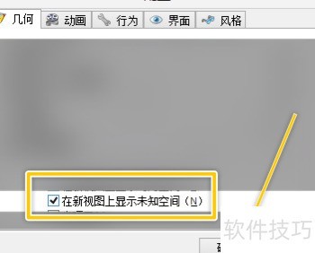 2、 进入配置行为界面,开启在新视图显示未知空间的选项。