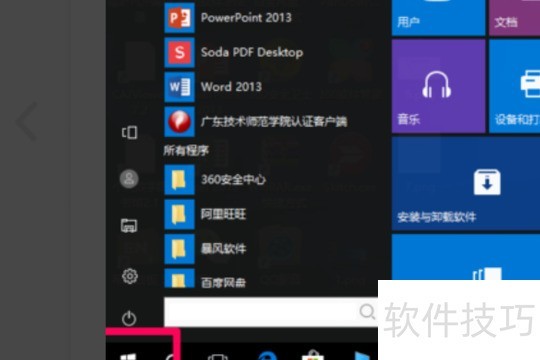2、 启动Windows 10系统后,点击屏幕左下角的开始按钮即可打开菜单。