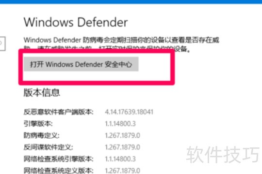 6、 五、在界面中定位打开Windows Defender安全中心选项,单击即可进入。
