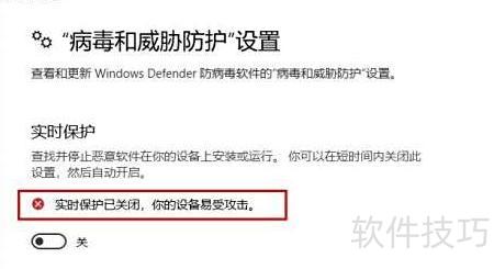 7、 关闭开关后,Defender将被停用并显示警告提示。