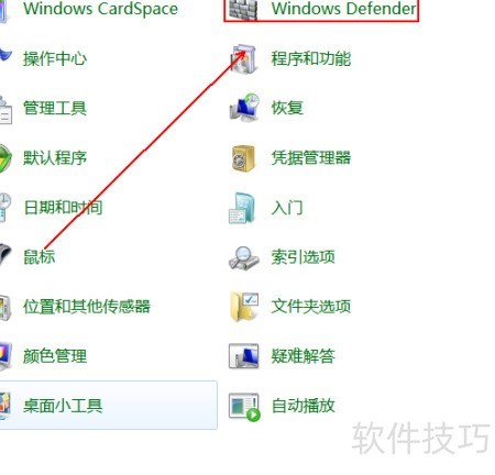 4、 在程序列表中找到并点击Windows Defender选项。